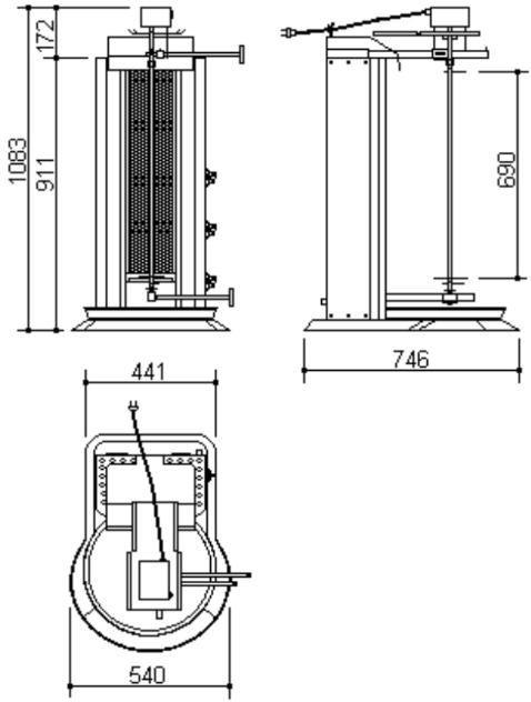 | 【商品説明】 ドネル ケバブ マシーン PDG 103D ・都市ガス又はLPガスを使用するタイプです。 ・セラミックヒーターは金網で保護されており交換も簡単にできます。 ・1列のダブルセラミックヒーターが3段になっており、各段ごとに火力の調整が可能です。 ・上部と下部をスライドさせることで肉とヒーターとの距離を変えることが出来ます。 ・ガス漏れ防止装置付きで火か消えると自動でガスが止まる仕組みになっています。 ・ショベル、オイルパンが付属しております。 *本体にコンセントが付いていますが使用できません。 *モーターの電源は単相230Vで、別途変圧器が必要です。 【General Features】 ・Possibility of operating the radiants seperately and with high- low capacity , ・Easy to replace protective wire in front of the radiants , ・Sliding upper and lower housings of the skewer for bringing meat closer to or taking away from the heaters , ・shovel with bakalite handle , ・Maintaining the distance fixed to the heaters depending on the slanted operation of the skewer with meat , ・In case of flame turns off , gas valves stops the delivery of gas automatically , |