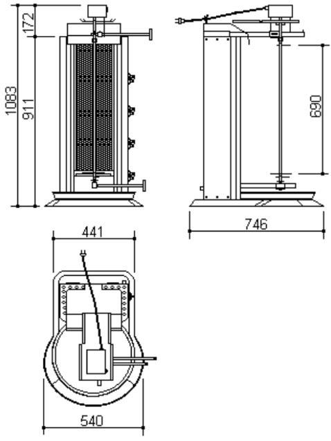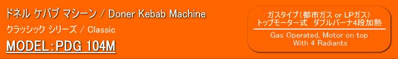 | 【商品説明】 ドネル ケバブ マシーン PDG 104M ・都市ガス又はLPガスを使用するタイプです。 ・セラミックヒーターは金網で保護されており交換も簡単にできます。 ・1列のダブルセラミックヒーターが4段になっており、各段ごとに火力の調整が可能です。 ・上部にセットされた回転モーター(1rpm)は左右回転の切り替えスイッチが付いています。 ・上部モーター部と下部をスライドさせることで肉とヒーターとの距離を変えることが出来ます。 ・ガス漏れ防止装置付きで火か消えると自動でガスが止まる仕組みになっています。 ・ショベル、オイルパンが付属しております。 *本体にコンセントが付いていますが使用できません。 *モーターの電源は単相230Vで、別途変圧器が必要です。 【General Features】 ・Possibility of operating the radiants seperately and with high- low capacity , ・Easy to replace protective wire in front of the radiants , ・Sliding upper and lower housings of the skewer for bringing meat closer to or taking away from the heaters , ・shovel with bakalite handle , ・Special motor (1 rpm) positioned at the bottom resisting to high temperatures, rotating left/ right , ・Maintaining the distance fixed to the heaters depending on the slanted operation of the skewer with meat , ・In case of flame turns off , gas valves stops the delivery of gas automatically , |