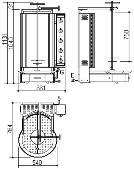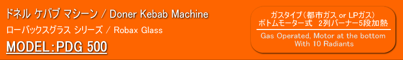 | 【商品説明】 ドネル ケバブ マシーン PDG 500 ・都市ガス又はLPガスを使用するタイプです。 ・ローバックス グラスは、ヒーターに直接油がはねるのを防ぎ、湾曲になっていることで熱の伝導率が良く、均等な焼き上がりを実現しました。また、お手入れが簡単で衛生面に優れており、安全性の高い高品質マシーンです。 ・湾曲になった2列のセラミックヒーターが5段になっており、各段ごとに火力の調整が可能です。 ・下部にセットされた回転モーター(1rpm)は左右回転の切り替えスイッチが付いています。 ・本体を前後に稼動する事で肉とヒーターの距離を調整することが出来ます。 ・ショベル、オイルパンが付属しております。 *本体にコンセントが付いていますが使用できません。 *モーターの電源は単相230Vで、別途変圧器が必要です。 【General Features】 ・Horizontal ceramic heaters (2 heaters each row , total 5rows)operated seperately , ・Shovel , draining sheet and oil collecting tray in s/s , ・Special motor (1 rpm) resisting to high temperatures, rotating left/ right ・Controlling the distance between the radiants and meat with the movement of the heating group and the relevant upper body to the back and forth , ・Equipped with a fused socket for electric doner kebap knife ・Homogeneous cooking due to the heaters covering the meatin a cicular way and the special glass with high conductivity of heat in front of the heaters , ・Cooking in a hygienic and safe way by means of heat resistant glass in front of the heaters preventing the splashing of the fat to the heaters |
