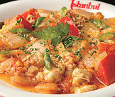 バルブンヤ ピラーキ Barbunya Pilaki ウズラ豆のトマトソース煮。サラダ感覚でいただくのがトルコ風。エクメック(トルコのピタパン)やピラヴと一緒にどうぞ。 |